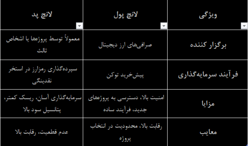 بررسی تفاوت ها و مقابسه ی پلتفرم های لانچپد (Launchpad)و لانچپول (Launchpool) :