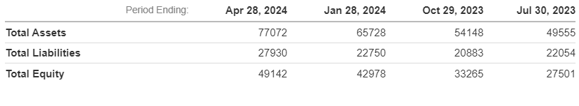 عملکرد مالی Nvidia در این دوره نیز حاکی از موفقیتهای بینظیر است. در سال 2024، کل درآمد این شرکت به 609.22 میلیارد دلار رسید که نشاندهنده رشد قابل توجهی نسبت به سالهای گذشته است. سود خالص در همین سال به 29.78 میلیارد دلار افزایش یافت، که نشاندهنده مدیریت مؤثر هزینهها و بهرهوری بالا در عملیات شرکت است. همچنین داراییهای کل شرکت به 652.78 میلیارد دلار رسید، در حالی که بدهیهای کل با مدیریت مالی هوشمندانه به 227.50 میلیارد دلار محدود شده است. این اعداد و ارقام، بیانگر توانایی Nvidia در استفاده بهینه از منابع مالی و سرمایهگذاریهای موفق در حوزههای نوین فناوری است.